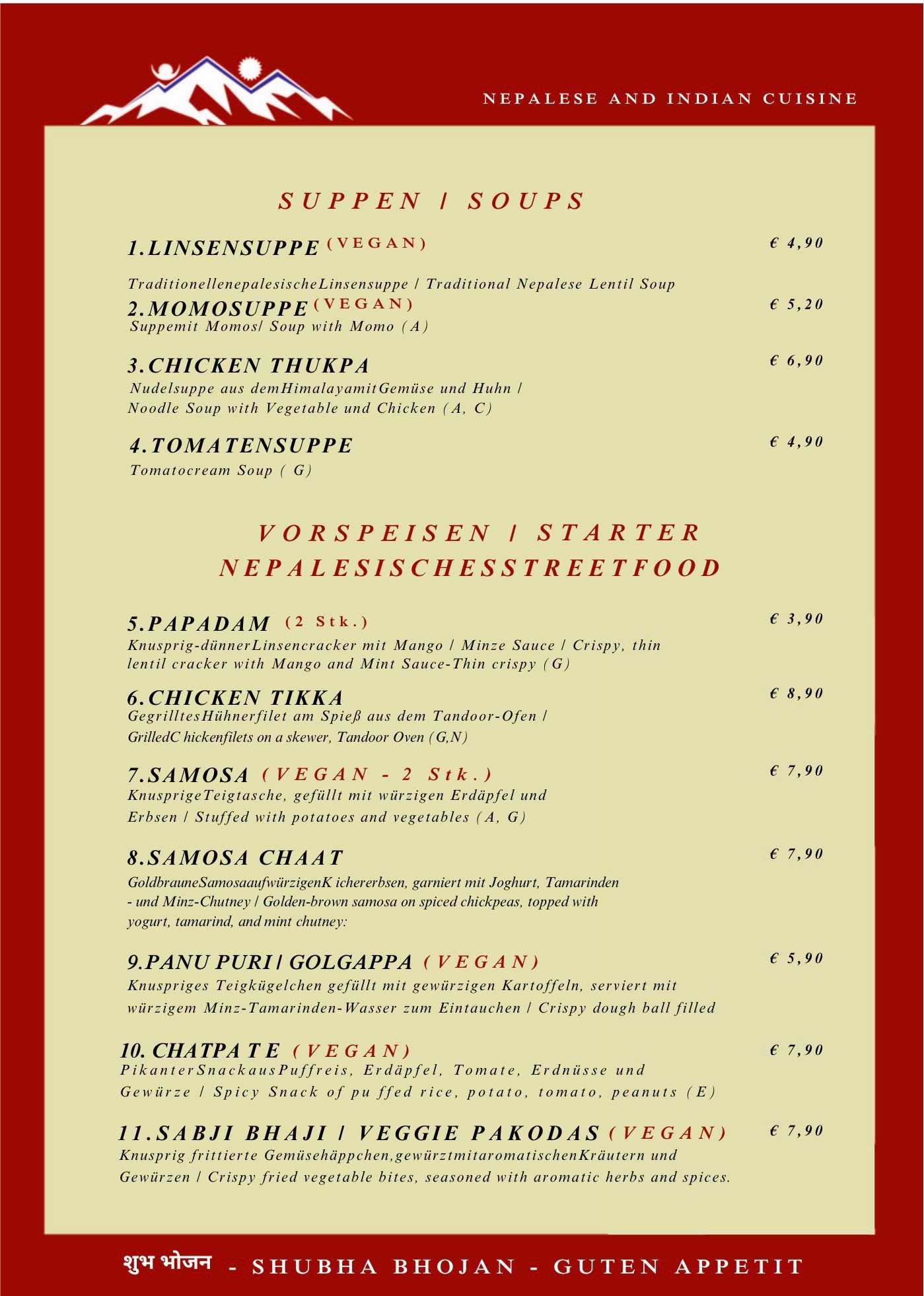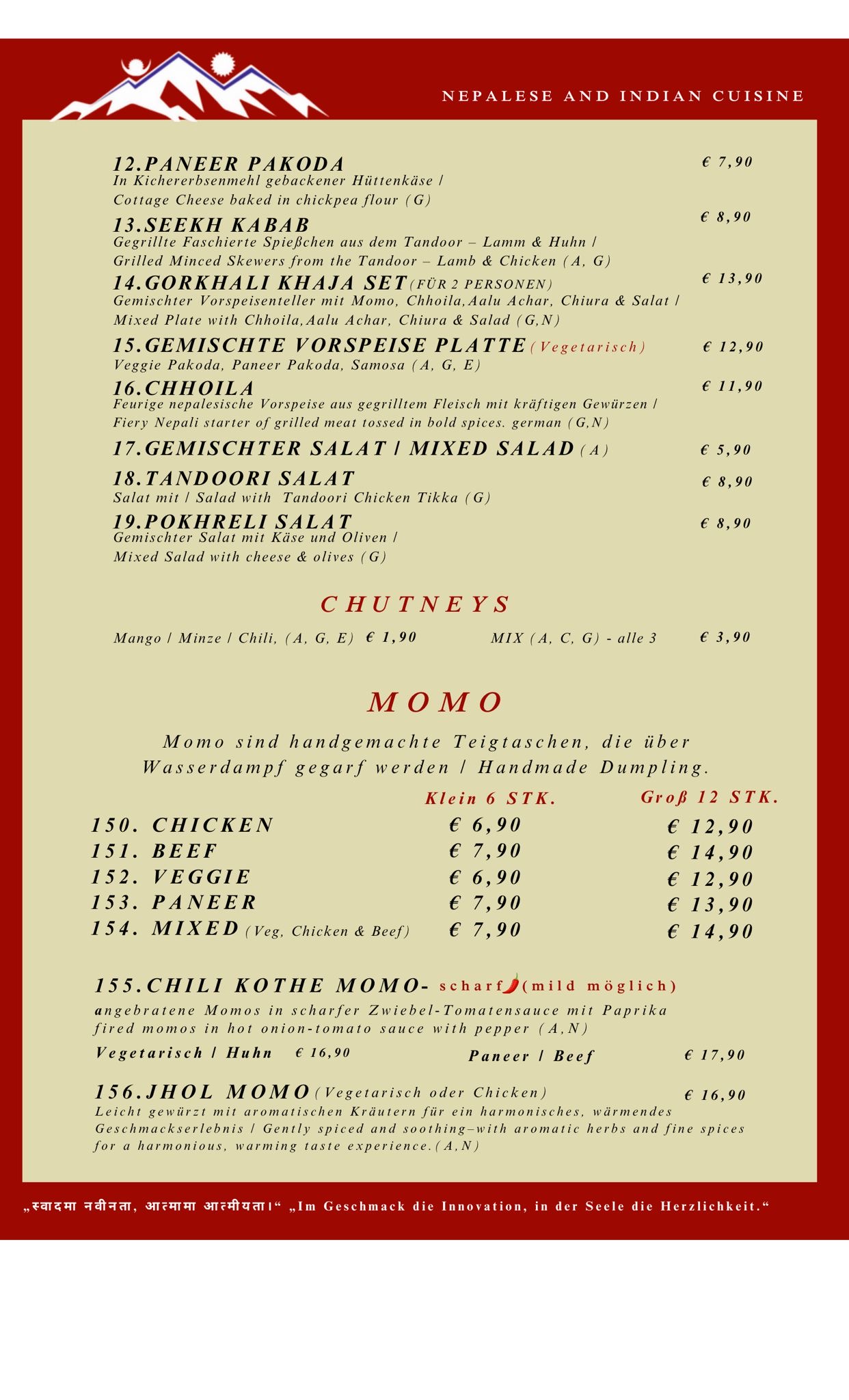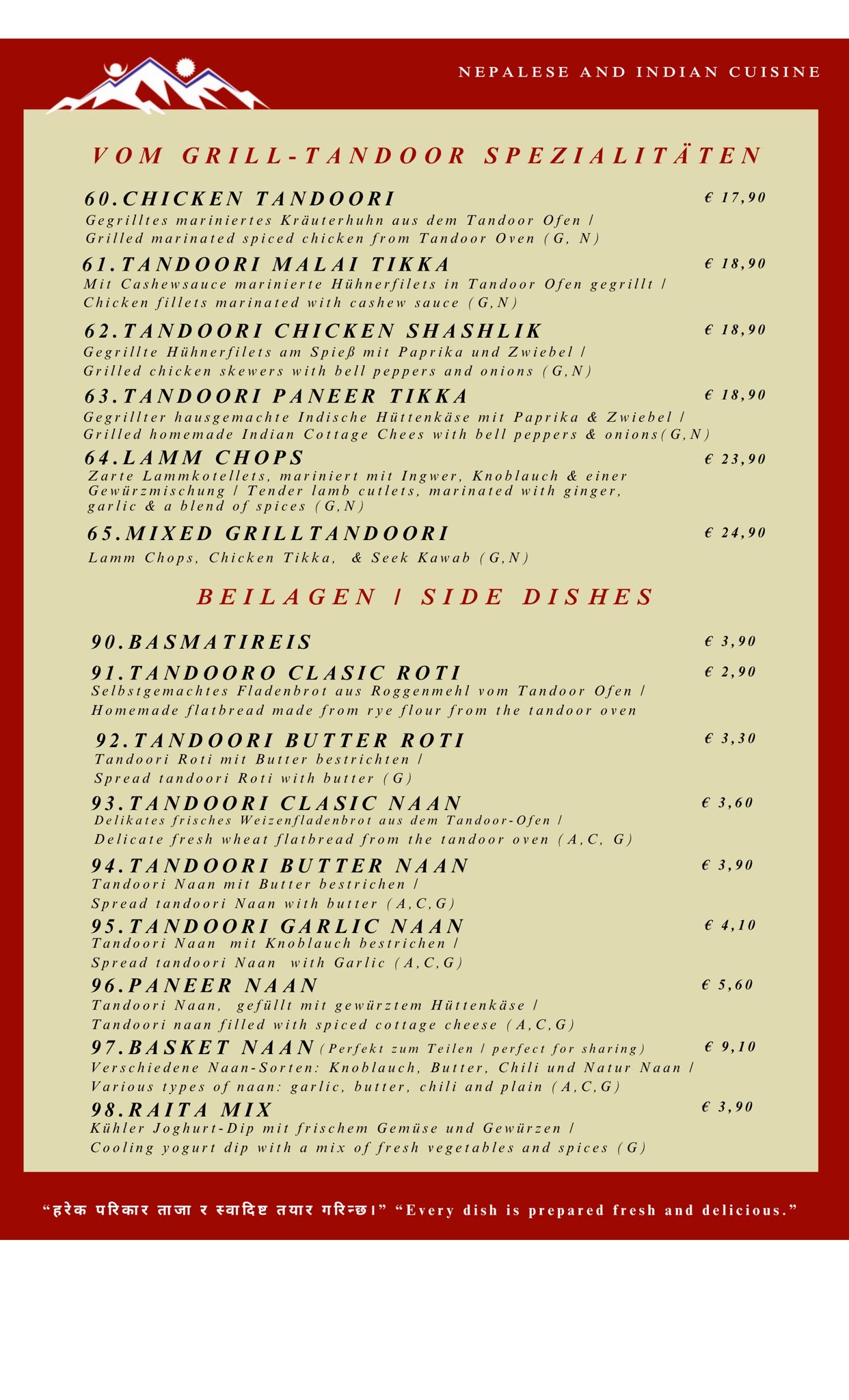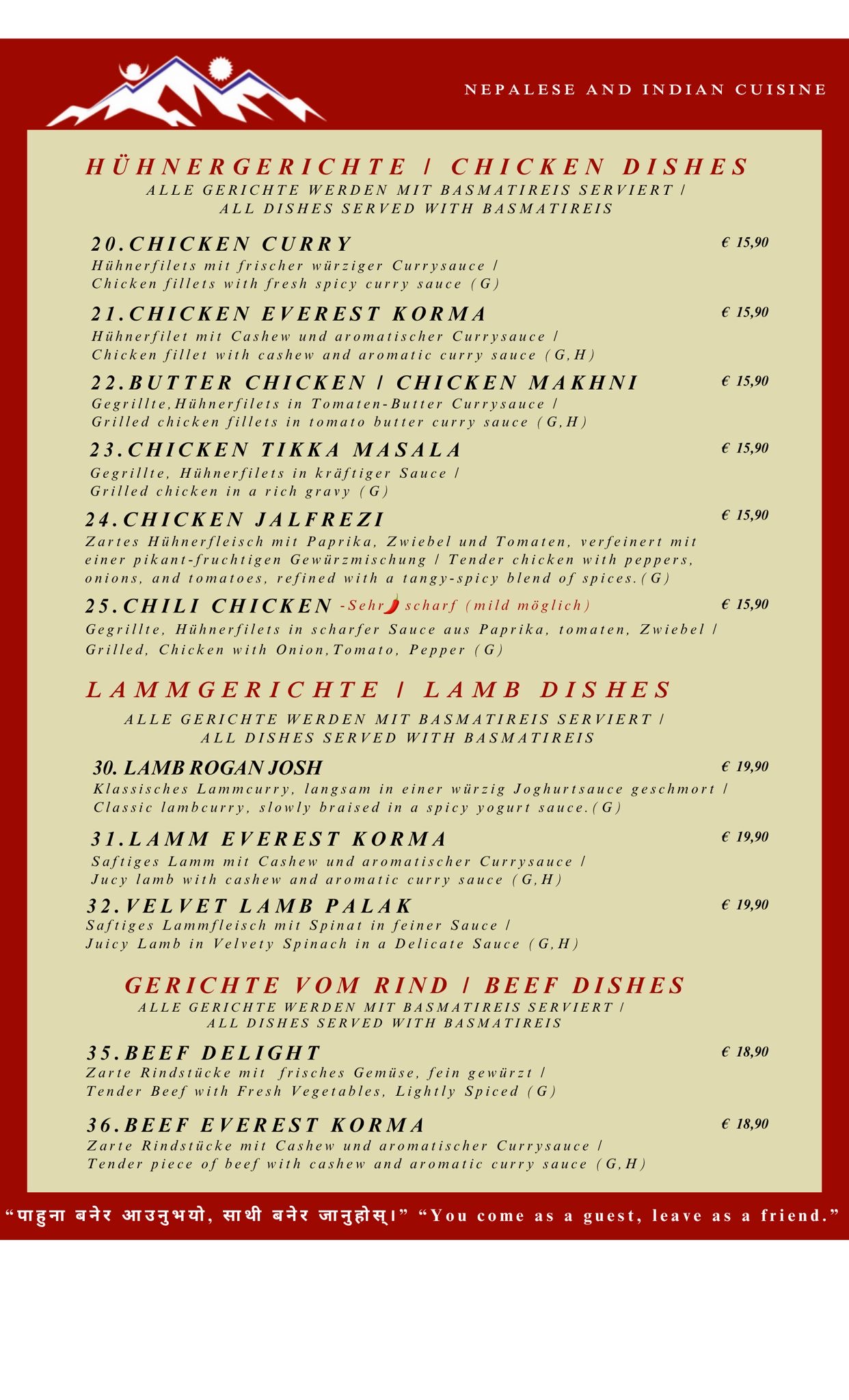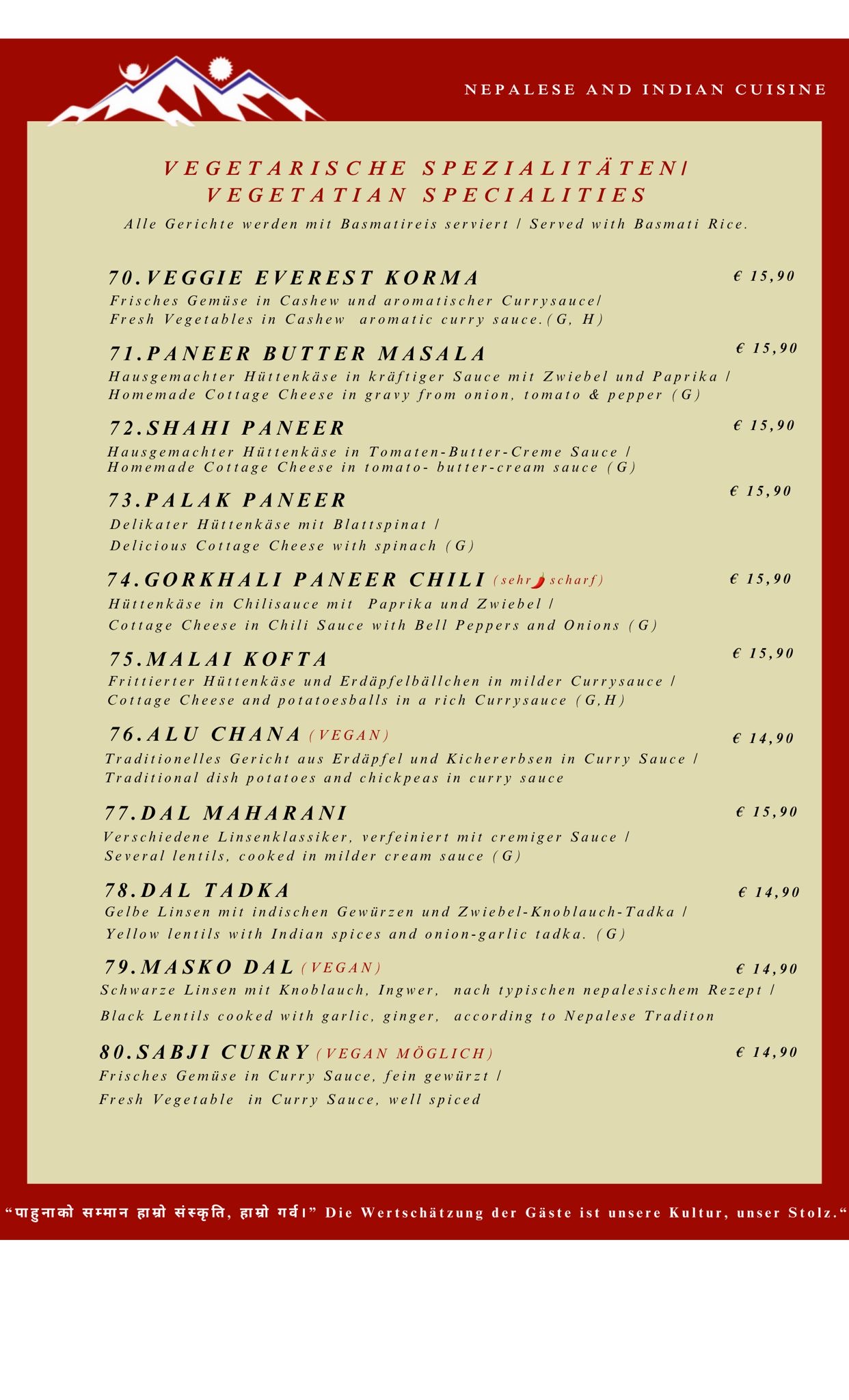 Menu from The Everest Restaurant